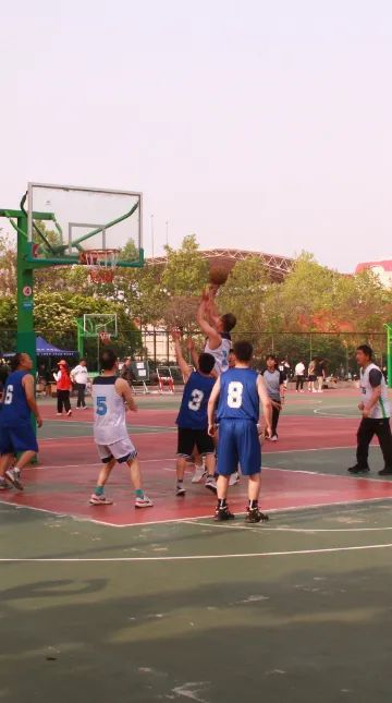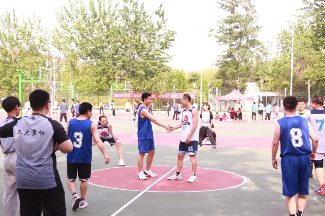 教职工在赛场上进行热身,阳光洒在他们身上,汗珠在额头闪烁,肌肉在轻微的拉伸中得到舒展,赛场上充满了紧张而愉快的氛围。比赛开始后双方队伍见面时,yanetfix