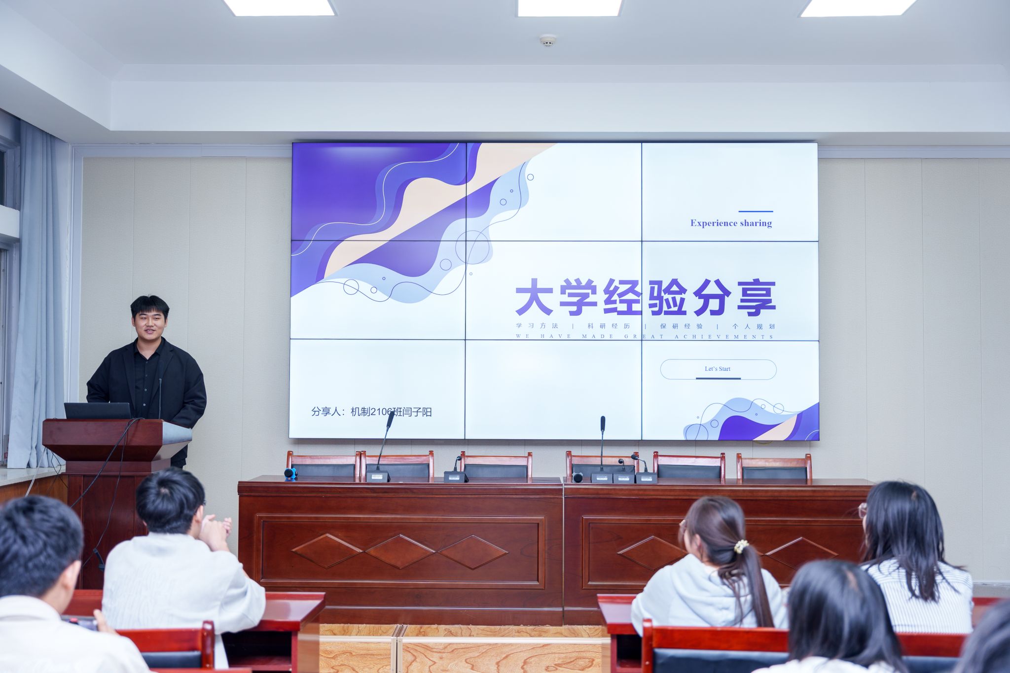 最后,在交流提问环节。学长学姐对同学们提出的问题进行了逐一细致地解答,同学们深受鼓舞,并表示要勇于尝试、敢于拼搏,实现更大的人生价值。
