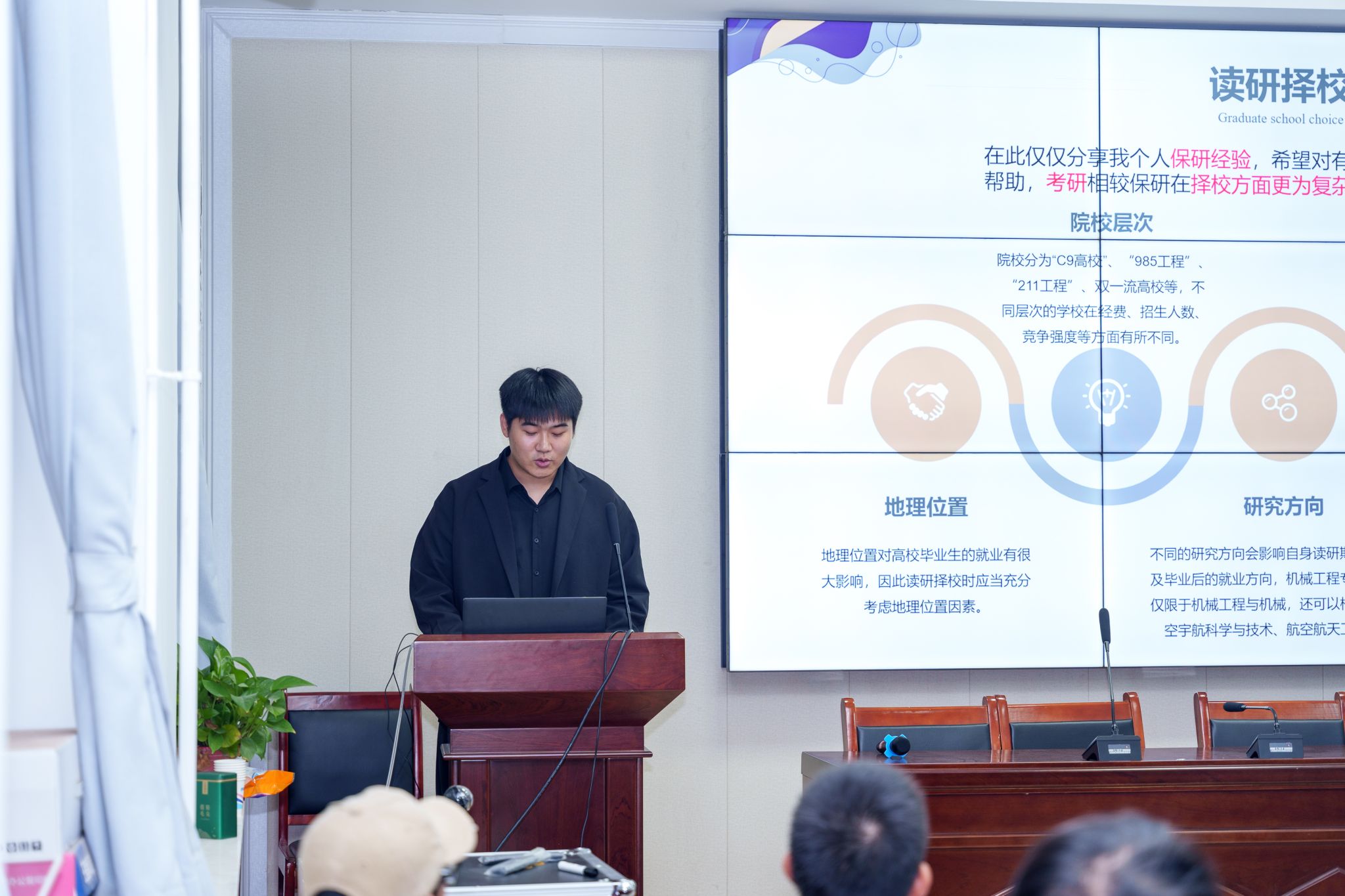 2025届推免生赵一墨、闫子阳、武新龙、张新露、王家琪进行学习经验分享。100余名师生参加了本次论坛。论坛由学院团委副书记丁晶晶主持。