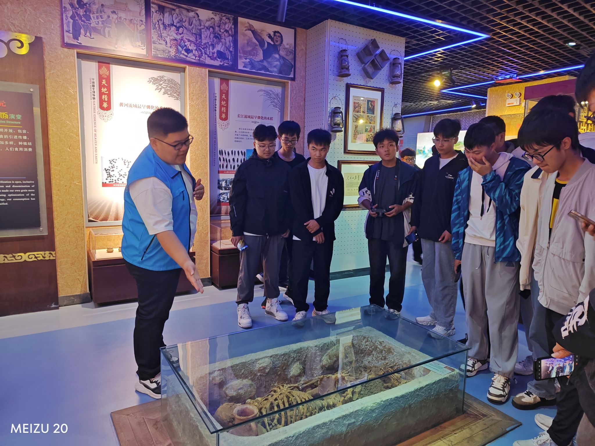 在博物馆志愿者的引导和讲解下,新生们逐一参观了前厅、序厅、文创产品展区、天地精华展区和文明之舟展区,通过古代农具、种子样本等实物,同学们了解到了人类从狩猎时代、采摘时代到农业时代的过度情况、五谷的概念、我国粮食作物的分布格局与演变、美洲粮食作物的引进和未来粮食的发展等知识。同时,在电影展厅观看了《粮食》纪录片,让同学们对节粮爱粮,感恩粮食,敬畏粮食有了更深刻的感悟。