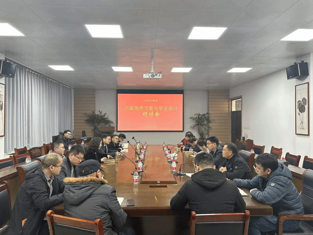 在惟明楼7244会议室召开机械设计制造及其自动化专业2025版本科人才培养方案修订及毕业设计选题研讨会。院长吴兰、机械工程系全体教师参加了研讨会,会议由机械工程系主任王宗才主持。