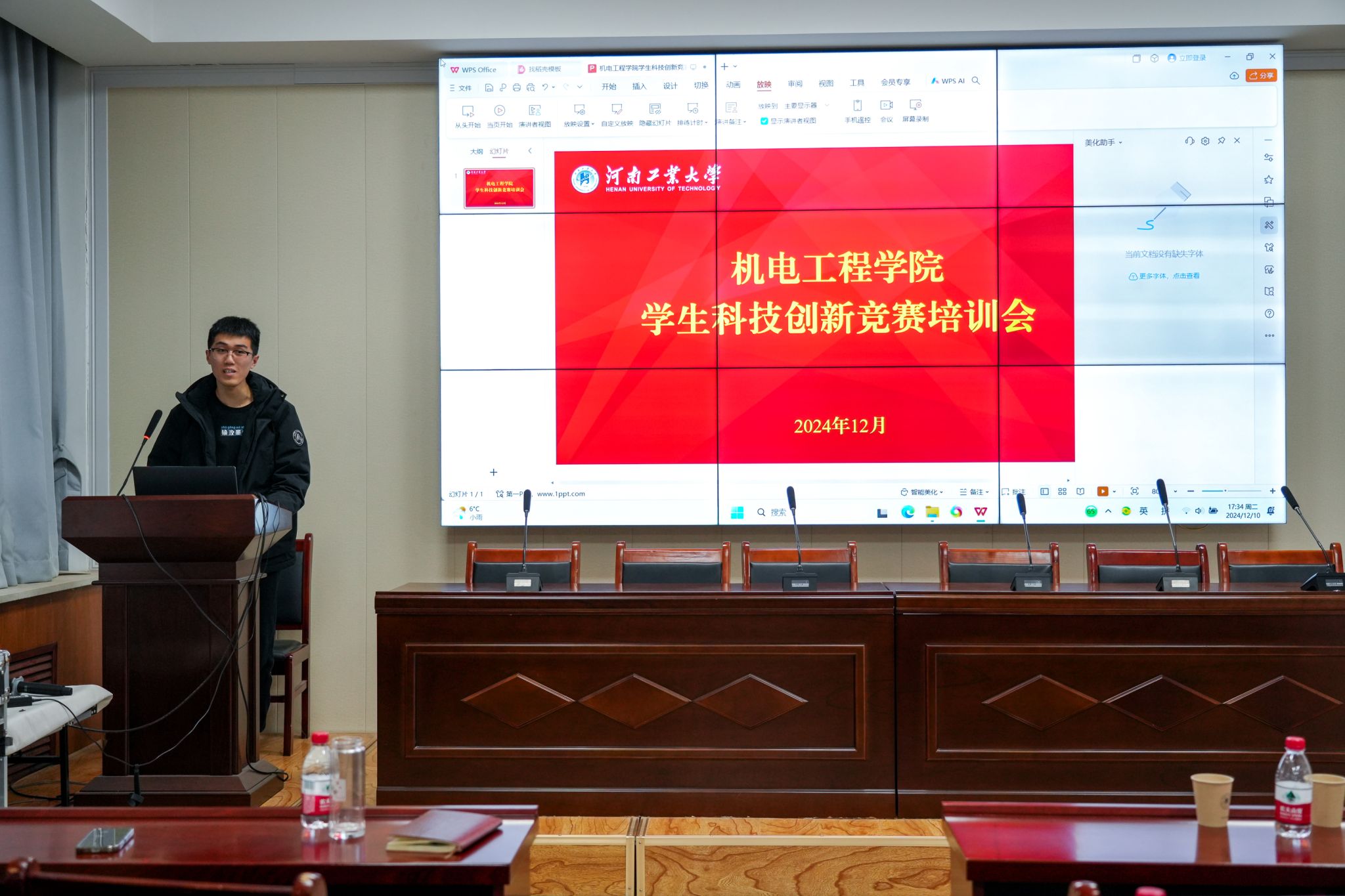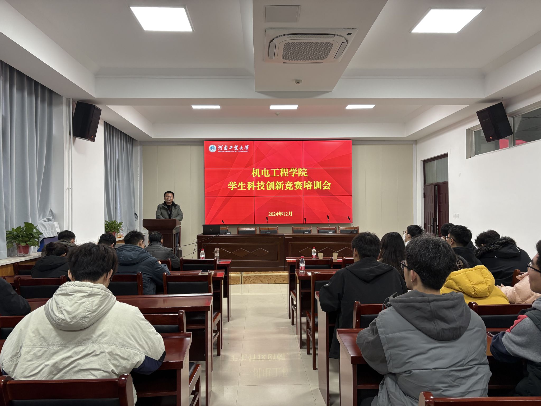 在惟明楼7224捷赛报告厅举办2025年学生科技创新竞赛专题培训会。培训会邀请校团委副书记李凯歌、学院副院长张博强、学院科技创新优秀指导教师赵治华担任主讲。学院党委副书记张东霞、全体辅导员和百余名师生参加了此次培训会,培训会由院团委书记丁晶晶主持。