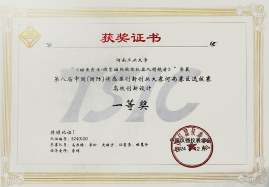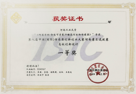 郏国中老师指导的“阿莫手环”项目最终荣获第八届中国(国际)传感器创新创业大赛决赛三等奖。