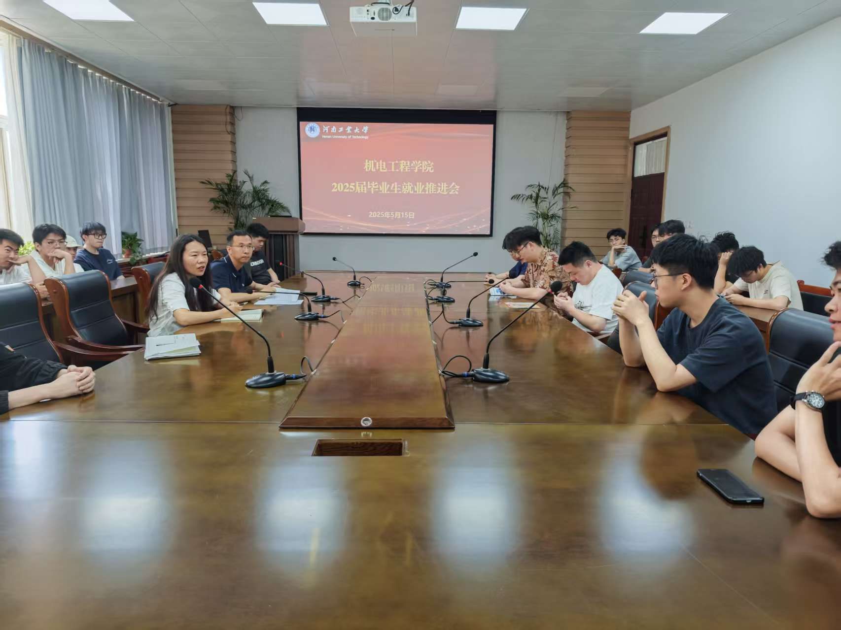为扎实推进毕业生就业精准帮扶工作,5月15日上午,机电工程学院在惟明楼7244会议室召开2025届毕业生就业推进会。学院党委书记魏涛、党委副书记张东霞、辅导员杨贞贞和未落实就业去向的毕业生参加会议。