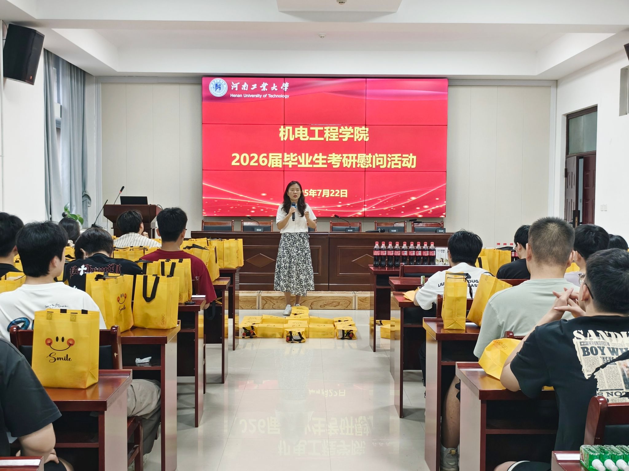 在惟明楼7224捷赛厅举行2026届毕业生考研暑期慰问活动。学院党委副书记张东霞、辅导员冯晨晨参加活动,为300余名留校考研学子送上暖心关怀。