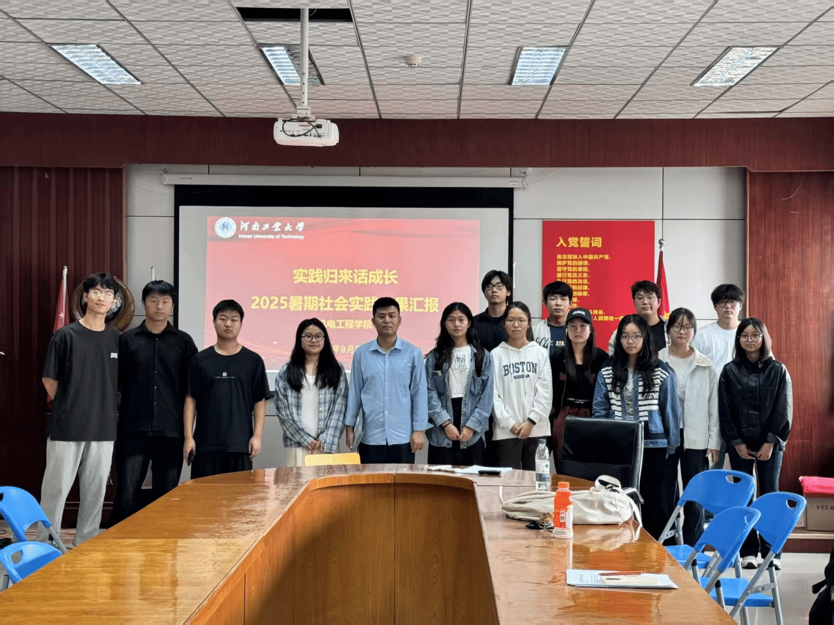 在7415会议室举办“实践归来话成长”暨2025年暑期社会实践成果汇报会。辅导员周贝贝、往届优秀社会实践团队代表、学生会负责同学及2025年社会实践团队负责人参会。