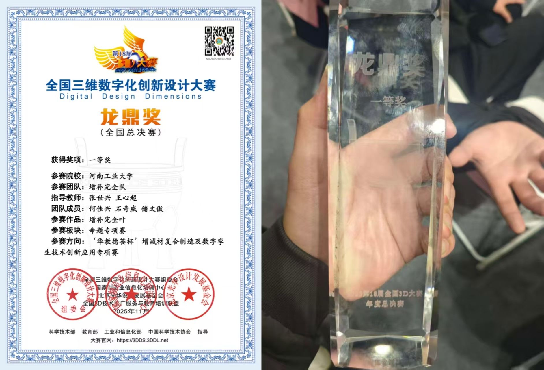 张世兴老师指导,本科生何佳兴、石奇威、储文傲组成的参赛团队,斩获国赛一等奖。