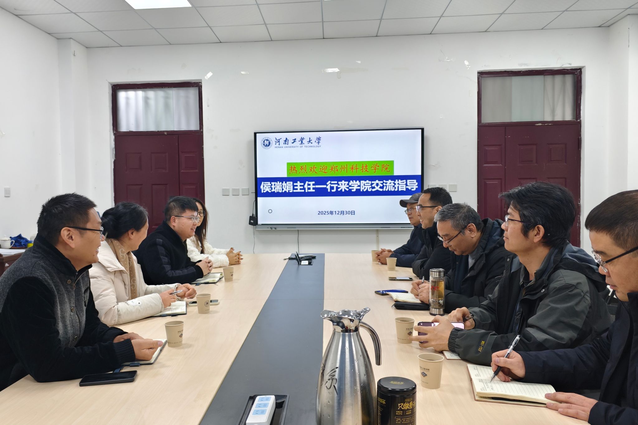 为深化校际合作,促进专业建设经验互鉴,2025年12月30日,郑州科技学院车辆与交通工程学院交通运输教研室主任侯瑞娟、车辆工程教研室主任孔令强一行四人到访学院,就车辆工程专业建设领域开展交流座谈。我校卓越工程师学院副院长张博强,车辆工程系主任吴心平及相关教师代表参加座谈会,双方围绕学科发展、人才培养、科研合作等议题展开深入交流。