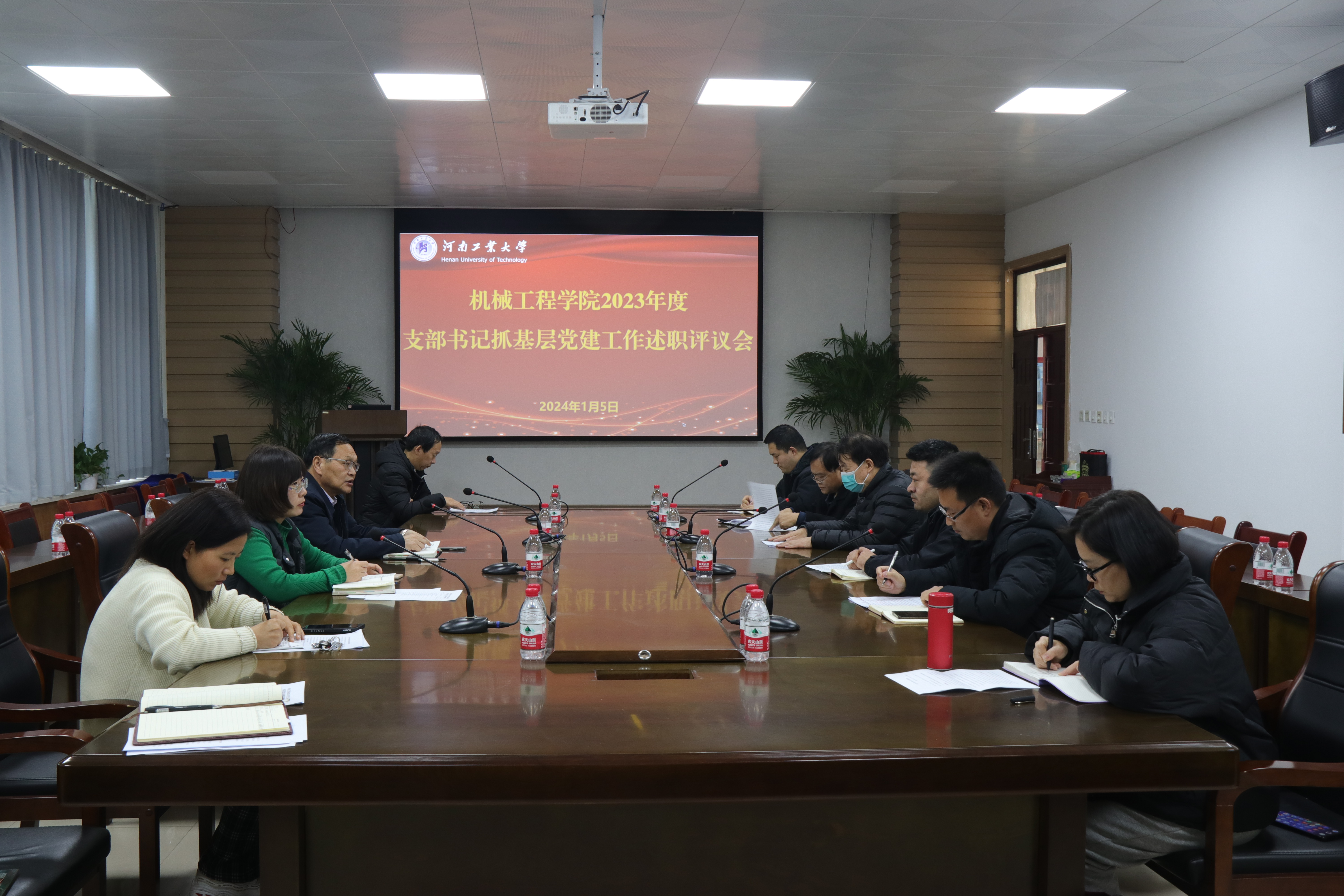2023年度党支部书记抓基层党建工作述职评议会在学院会议室举行。学院领导班子成员及各教工党支部书记参加会议。会议由学院党委副书记张小彩主持。