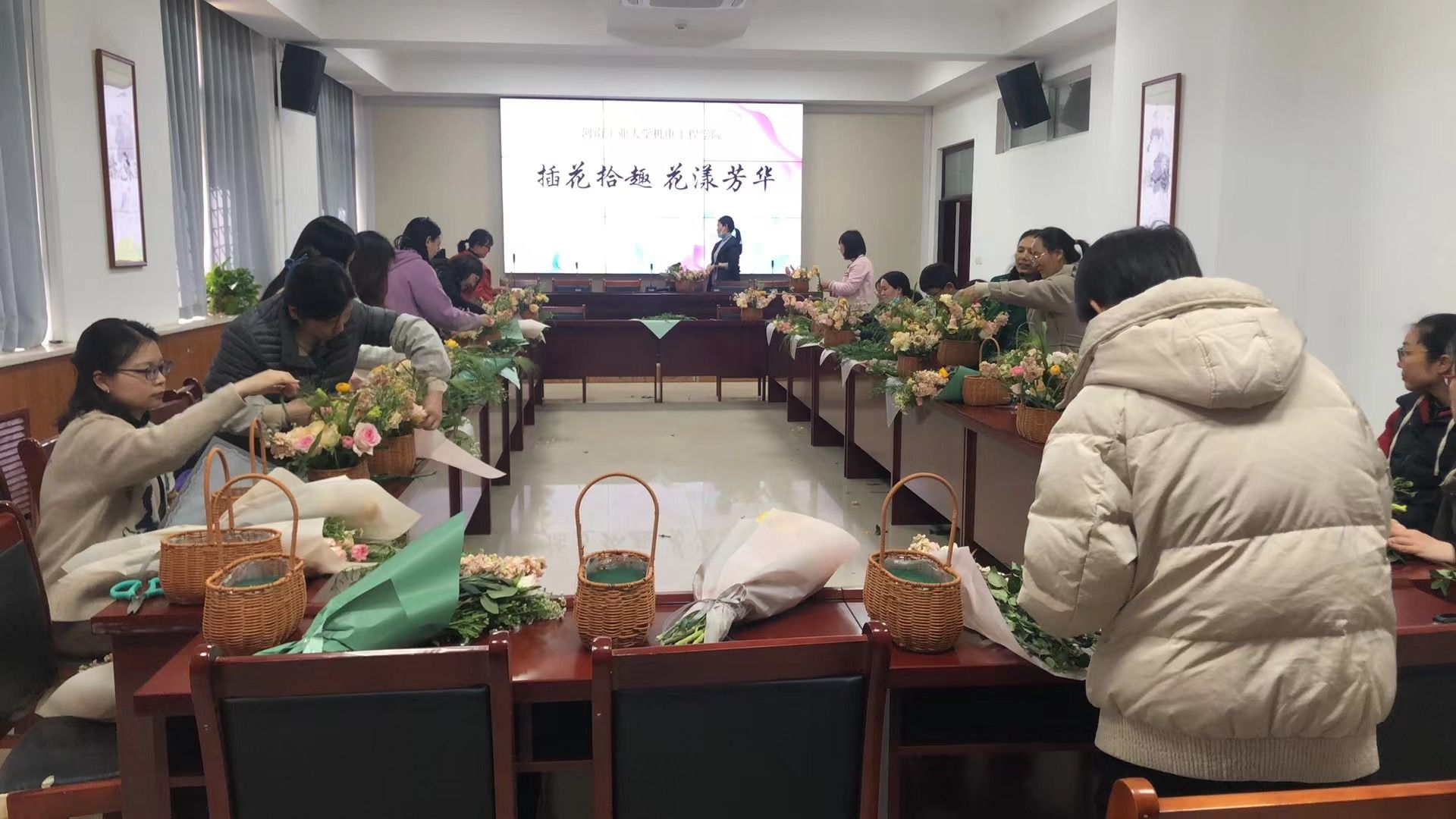 举办了“插花拾趣,花漾芳华”的艺术插花主题活动及集体观影活动。