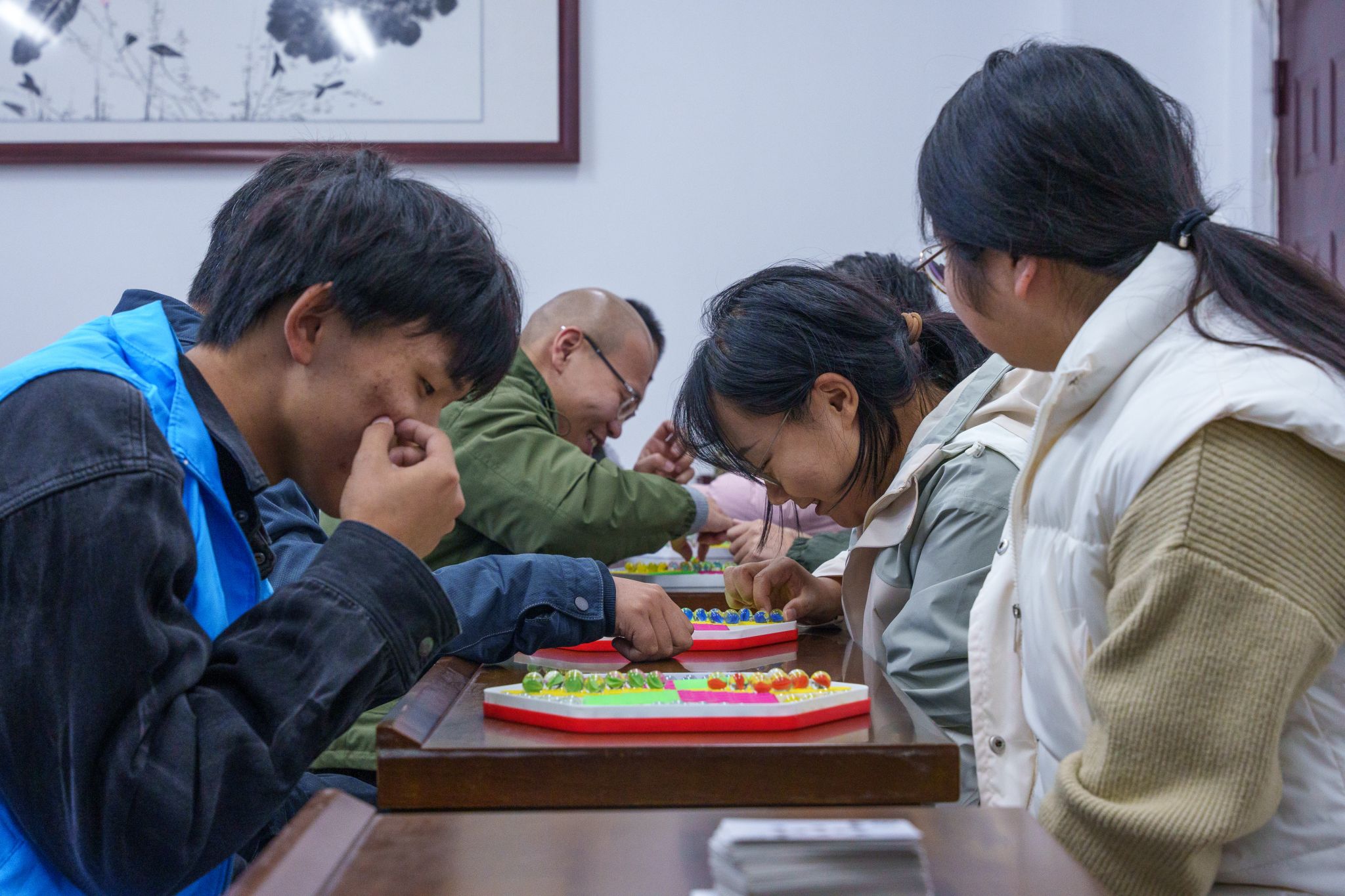 象棋比赛现场,老师们或低头沉思,或果断落子,展现出高超的棋艺和冷静的头脑,每一次落子都经过深思熟虑,既体现了竞技精神。跳棋项目中,参加的老师仔细观察棋局布设,认真排兵布阵,运筹帷幄;益智双生比赛项目,既考验个人的棋牌技艺,也需要队友的默契配合。