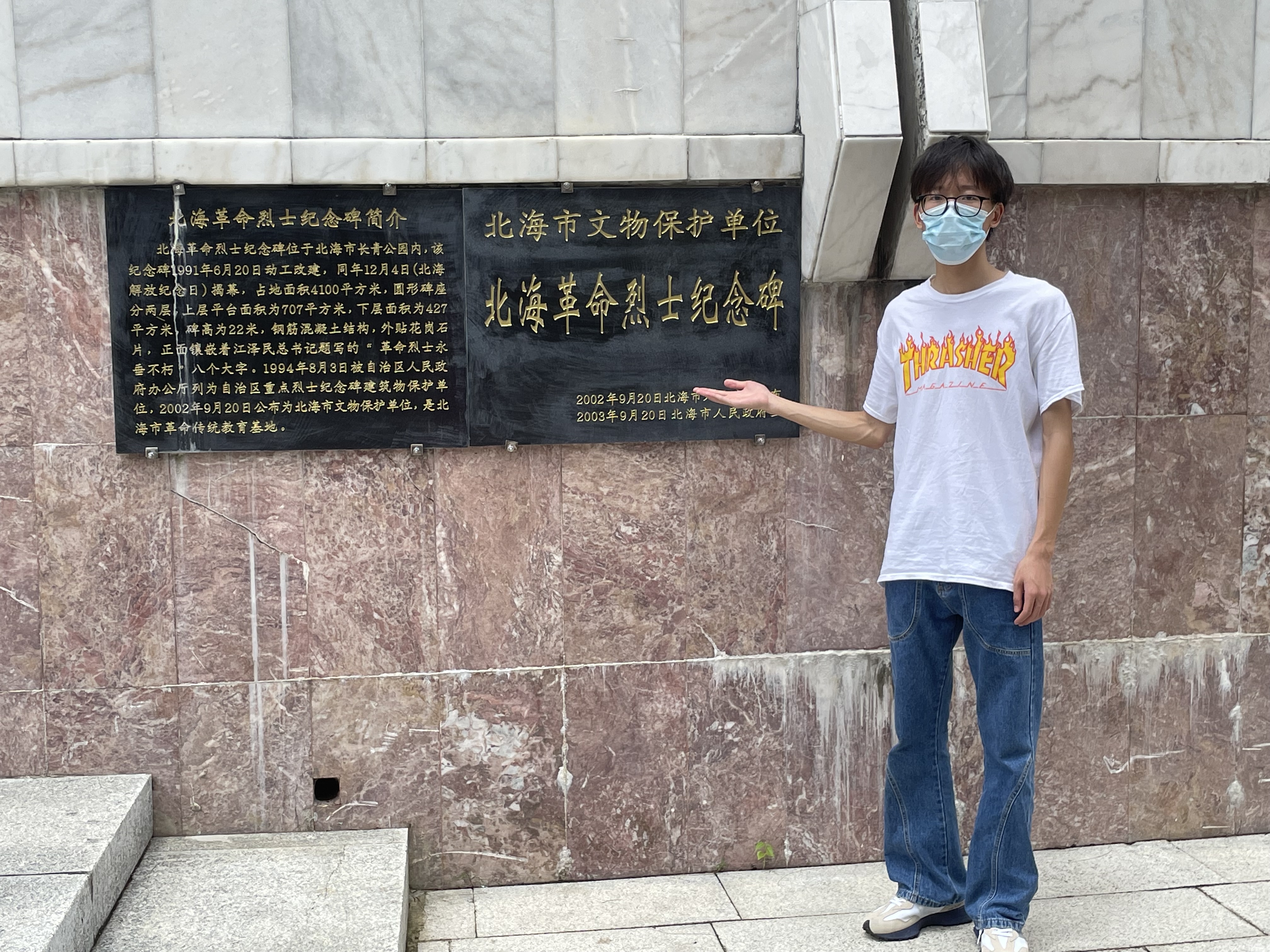 围绕着纪念碑,来到纪念碑后方,篆刻着的是烈士碑的碑文,碑文的内容是北海市1876至1949年,长达73年的革命历史。
