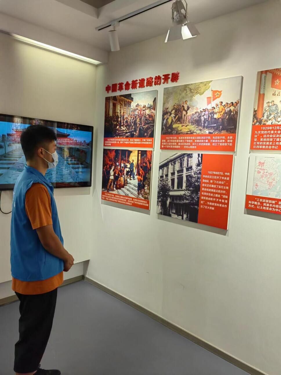 实现中华民族伟大复兴始终是近代以来中国人民最伟大的梦想。无数志士仁人前仆后继、不懈探索,寻找救国救民道路,却在很长时间内都抱憾而终。中国共产党团结带领中国人民完成社会主义革命,确立社会主义基本制度,消灭一切剥削制度,推进了社会主义建设。这一伟大历史贡献的意义在于,完成了中华民族有史以来最为广泛而深刻的社会变革,为当代中国一切发展进步奠定了根本政治前提和制度基础,为中国发展富强、中国人民生活富裕奠定了坚实基础,实现了中华民族由不断衰落到根本扭转命运、持续走向繁荣富强的伟大飞跃。作为一名在郑州求学的学子和党史学习小组的成员,本人于8月4日前往郑州市党史馆学习郑州市在中国共产党的红色革命中留下的足迹。进入党史馆,一面党的探索历程墙映入眼帘,鸦片战争、甲午战争,这些屈辱的图画讲述了中国陷入内忧外患的黑暗境地,这是近代的没落;太平天国运动、义和团运动,这些燃起的反抗斗志终归梦碎;戊戌变法、洋务运动,这些希望改变旧中国的探索历程曲折而又艰辛;新文化运动、五四运动,这些变革使得马克思主义在中国广泛传播......终于,中国历史开天辟地,社会面貌焕然一新,中国共产党于1921年成立了!中国由此走向民族伟大复兴的辉煌道路。