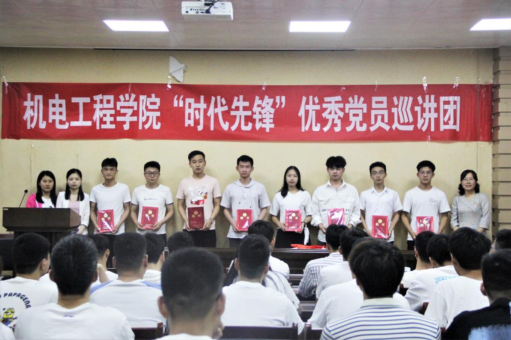 “时代先锋”优秀党员巡讲团的团员,是学院在学风建设、科技创新、抗击疫情、党团建设、学生干部、参军入伍、考研就业等方面最突出的集体和个人代表。希望大家能珍惜荣誉,肩负使命,讲好每个人的奋斗故事、创新故事、服务故事、奉献故事、成才故事等,切实发挥优秀党员的先进模范作用,传播正能量,使党史学习教育活动进一步走深走实,营造良好的院风学风,促进学院高质量发展",传播正能量,使党史学习教育活动进一步走深走实,营造良好的院风学风,促进学院高质量发展。