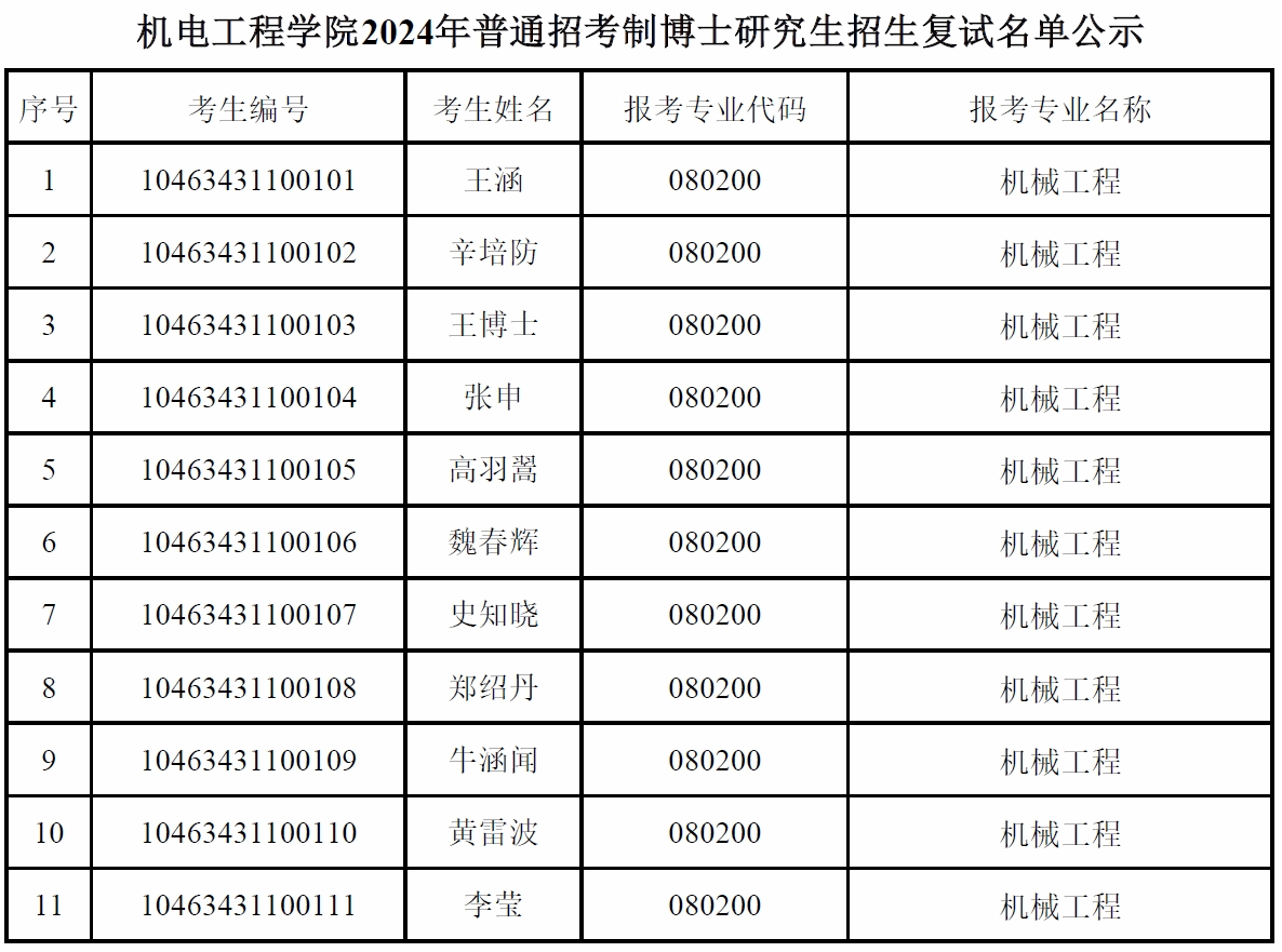 yanetfix 2024年普通招考制博士研究生复试名单公示