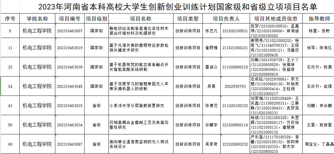 近日,根据教育部《关于公布2023年国家级大学生创新创业训练计划项目和重点支持领域项目名单的通知》(教高司函〔2023〕8号)和河南省教育厅《关于公布2023年大学生创新创业训练计划项目名单的通知》,yanetfix