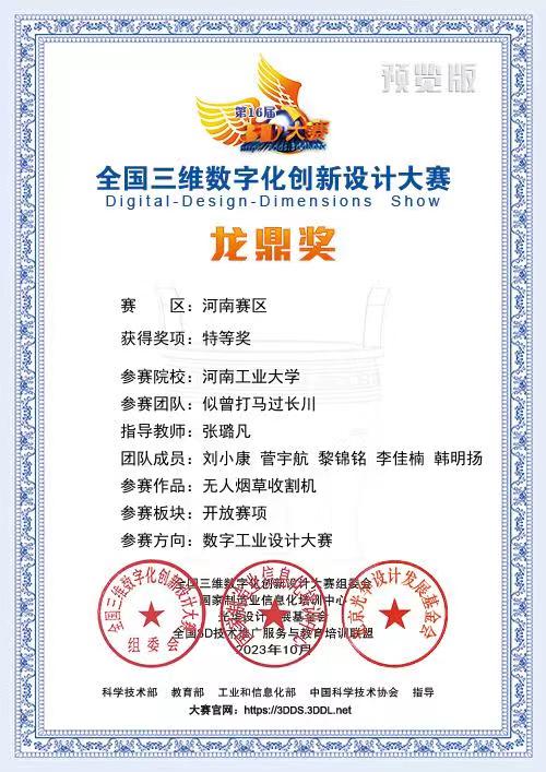 赛前,同学们做了充足的准备,参赛队员们自2023年4月开始着手参赛准备工作,指导教师和学生牺牲暑假休息时间精心备赛,攻坚克难。在荣获特等奖的两项作品中,由刘小康、李佳楠、菅宇航、黎锦铭、韩明扬等同学设计的“无人烟草收割机”,构思新颖,大胆创新,能够使烟草收割变得更加简单;另一件由扶宇洋、徐威、扶瑶琪、游蕾、金文浩等同学设计的“滑轨机器人堆垛机”作品,别出心裁,让堆垛的效率有进一步提升。荣获一等奖的作品中,由理家豪、黄乐炜、陈俭超、严乐盈、郭赟等同学设计的“龙门架装车系统”,别具匠心,使装卸效率大大提高、安全系数提高。