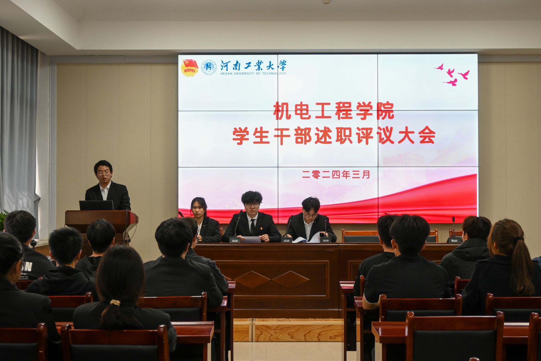 在捷赛厅召开学生干部述职评议大会。学院团委副书记丁晶晶及全体学生会工作人员参加,会议由学生会执行主席刘家瑞主持。