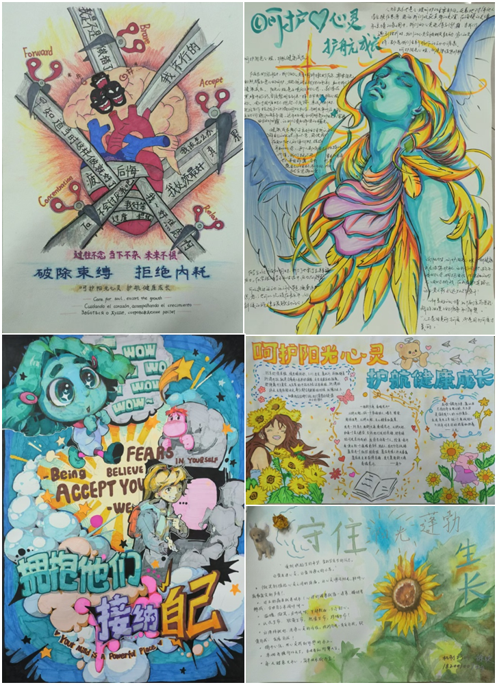 开展心理素材作品征集活动,吸引全校120余名同学的积极参与,各参赛同学通过海报、手抄报、绘画、手工DIY创作等多种形式,表达自我,展现才华,体现了自己对心理世界的精彩理解。