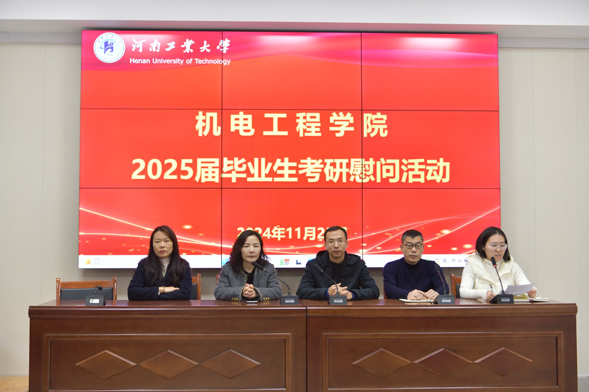 2025年全国硕士研究生招生考试即将到来,为帮助考研学子缓解备考压力、调整备考心态、坚定冲刺信心,11月25日,我院开展2025届毕业生考研送温暖活动。学院党委书记魏涛、院长吴兰、党委副书记张东霞、学工办主任刘伟杰、2025届考研毕业生代表参加活动。活动由毕业班辅导员杨贞贞主持。