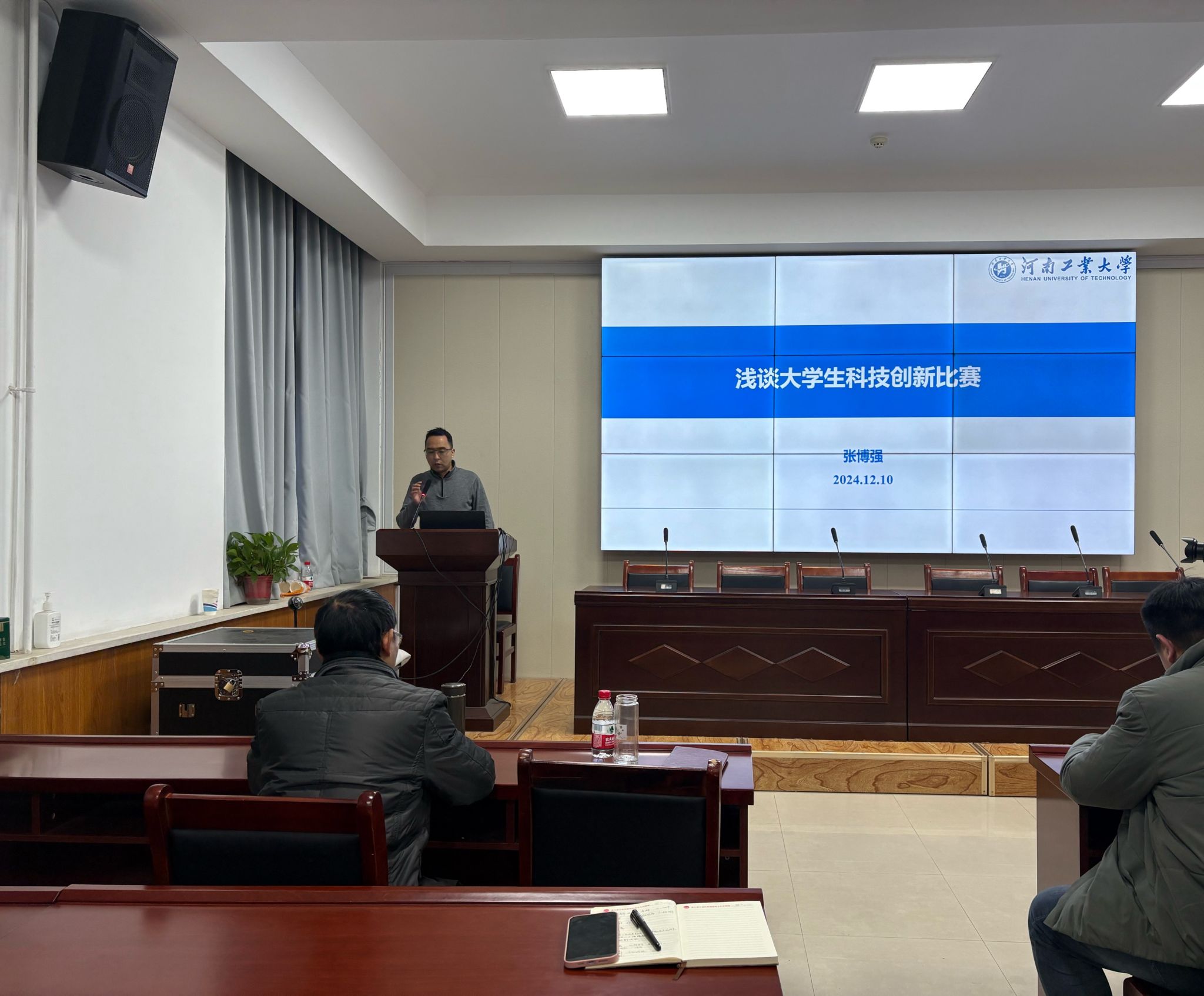 培训会上,李凯歌以“无挑战,不青春”为主题,全面介绍了“挑战杯”竞赛的概况及评审规则,细致阐述了备赛策略,着重强调了严谨求实的科研态度、贴近现实的课题选择、周密的计划部署、科学前沿的研究方法以及团队间的紧密协作对于科技创新竞赛成功的重要性。