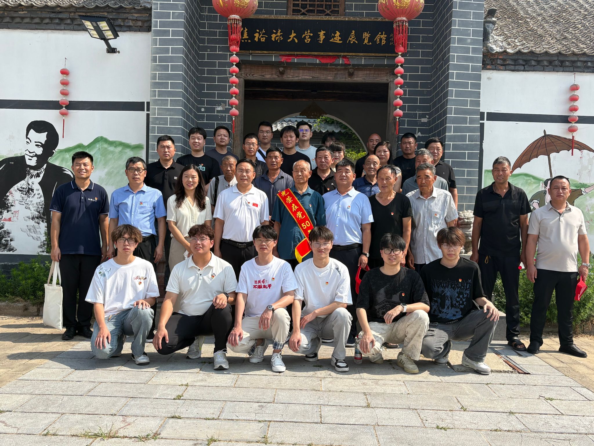 为庆祝中国共产党成立104周年,深化党员党性修养与宗旨意识,推动深入贯彻中央八项规定精神学习教育落地见效,6月24日,我院师生党员代表携手学校定点帮扶马古岗村的党员干部,走进郑州航空港区焦裕禄大营事迹展览馆,联合开展了“银发丹心传薪火 青春向党续华章”主题党日活动。