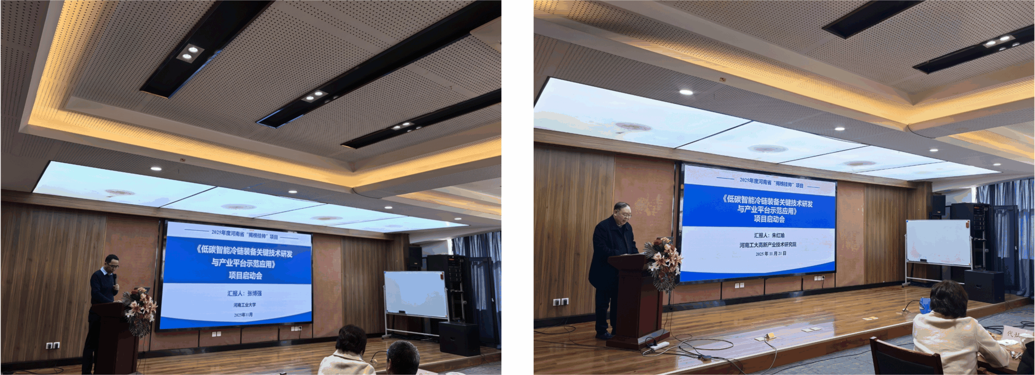 郑州凯雪冷链股份有限公司董事长冯仁君详细介绍了项目背景、产业发展需求以及亟需突破的关键技术瓶颈,强调了该项目对推动冷链产业技术进步的重要意义。课题负责人张博强、朱红瑜分别围绕课题的研究内容、前期研究储备、创新突破点及详细实施方案等关键内容作专题汇报,内容翔实、重点突出,得到与会领导和专家的认可。