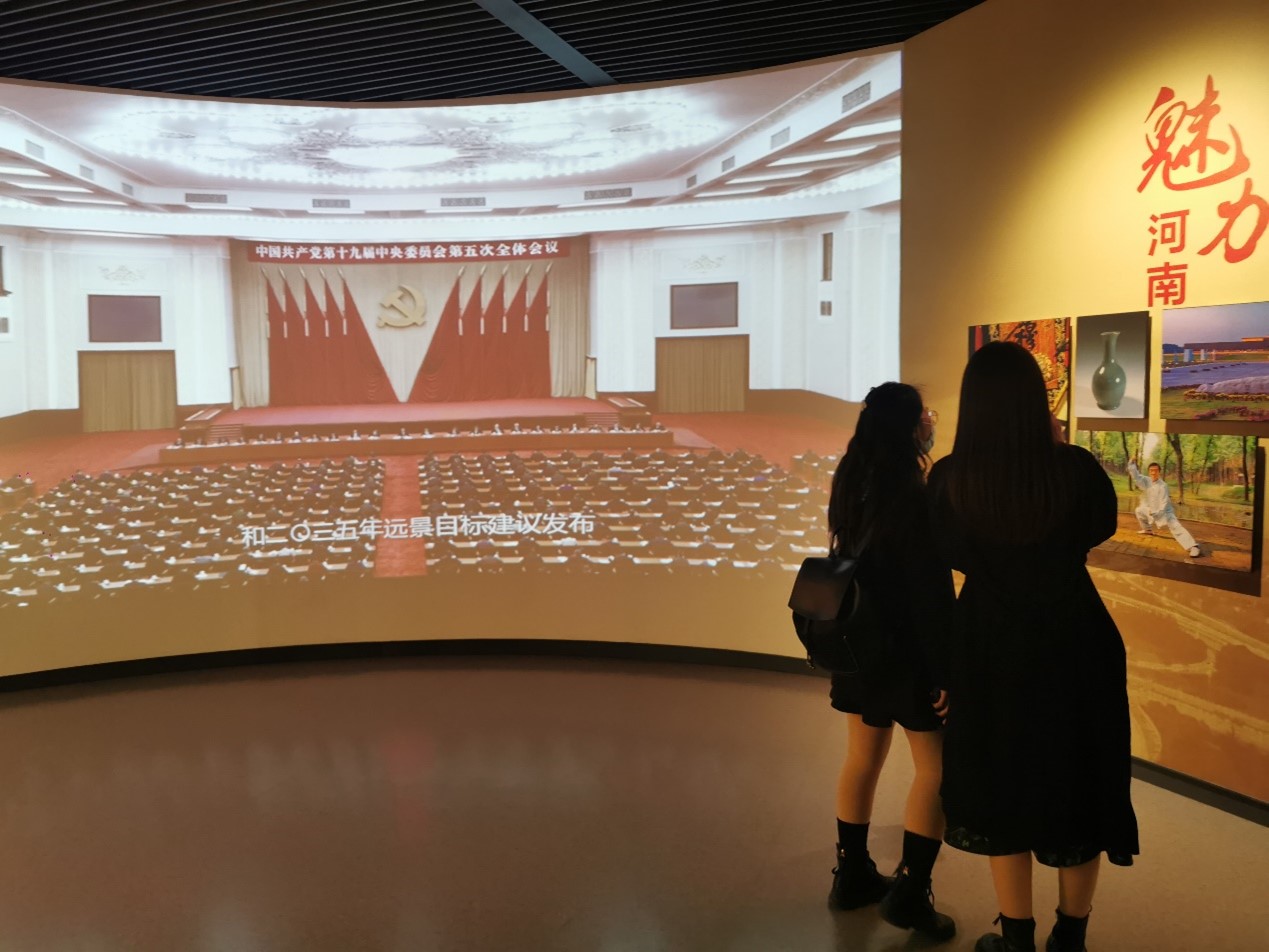 “出彩中原”河南红色文化陈列展以时间线索分为“打破旧世界”“建设新家园”和“走进新时代”三大部分,展览面积约1000平方米,通过珍贵的文物、文献、历史照片,结合视频多媒体、电子沙盘、场景复原等多种形式,全面展现近现代河南波澜壮阔的历史画卷。参观过程中,同学们回顾了近现代史上中国共产党领导河南人民救亡图存、建设河南的伟大历程和改革开放取得光辉成就,全面学习了河南建立党组织、鄂豫皖革命根据地、竹沟抗战、挺进中原、社会主义国家建设探索和改革开放等重大历史进程、历史事件和历史人物,深刻领悟了大别山精神、红旗渠精神和焦裕禄精神的实质内涵。