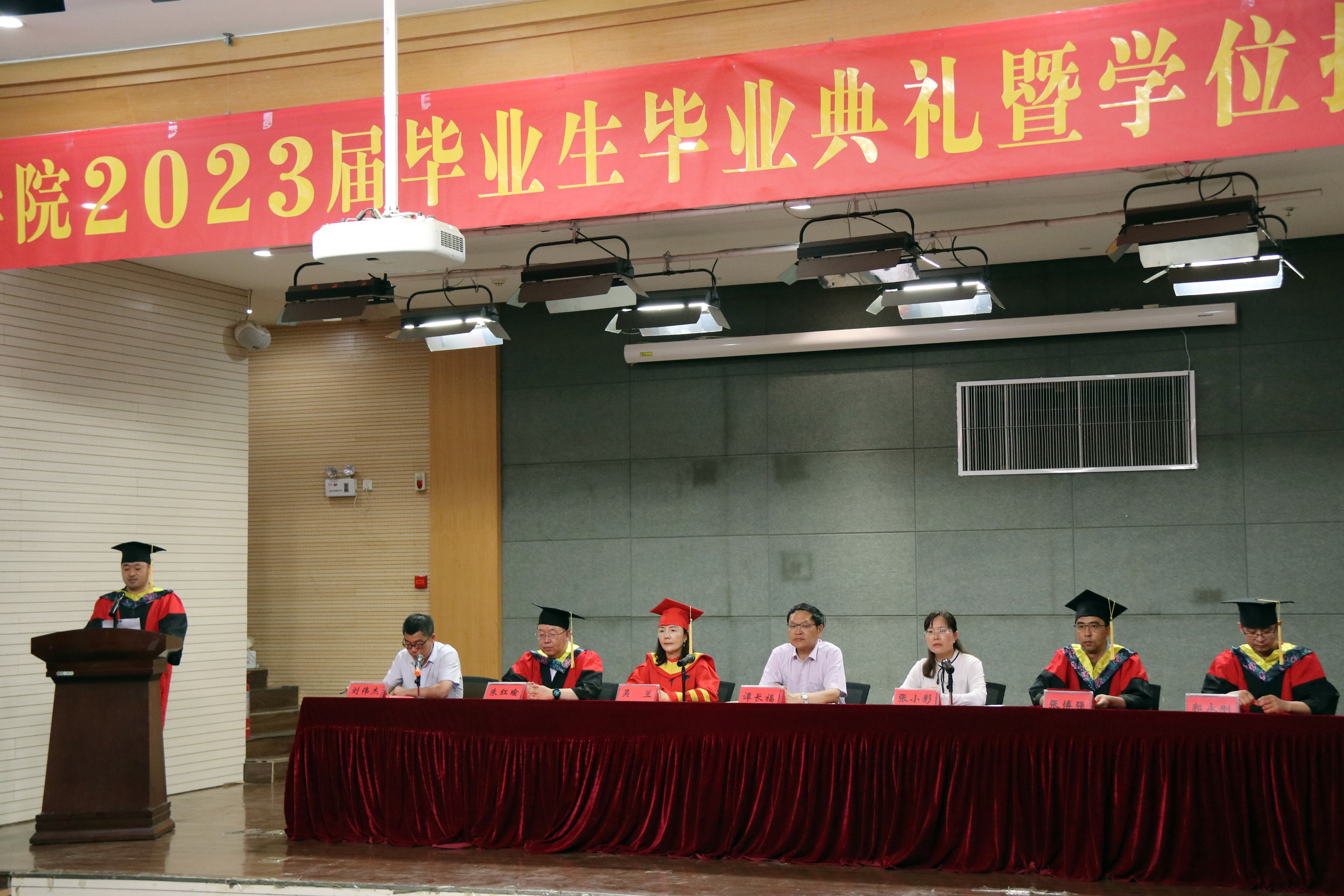 在图书馆学术报告厅隆重举行2023届毕业生毕业典礼暨学位授予仪式。学院党委书记谭长福、院长吴兰、党委副书记张小彩和各系(科室)主任、毕业班班主任、教师代表、全体辅导员及学院2023届毕业生参加典礼。典礼由学院学工办主任刘伟杰主持。