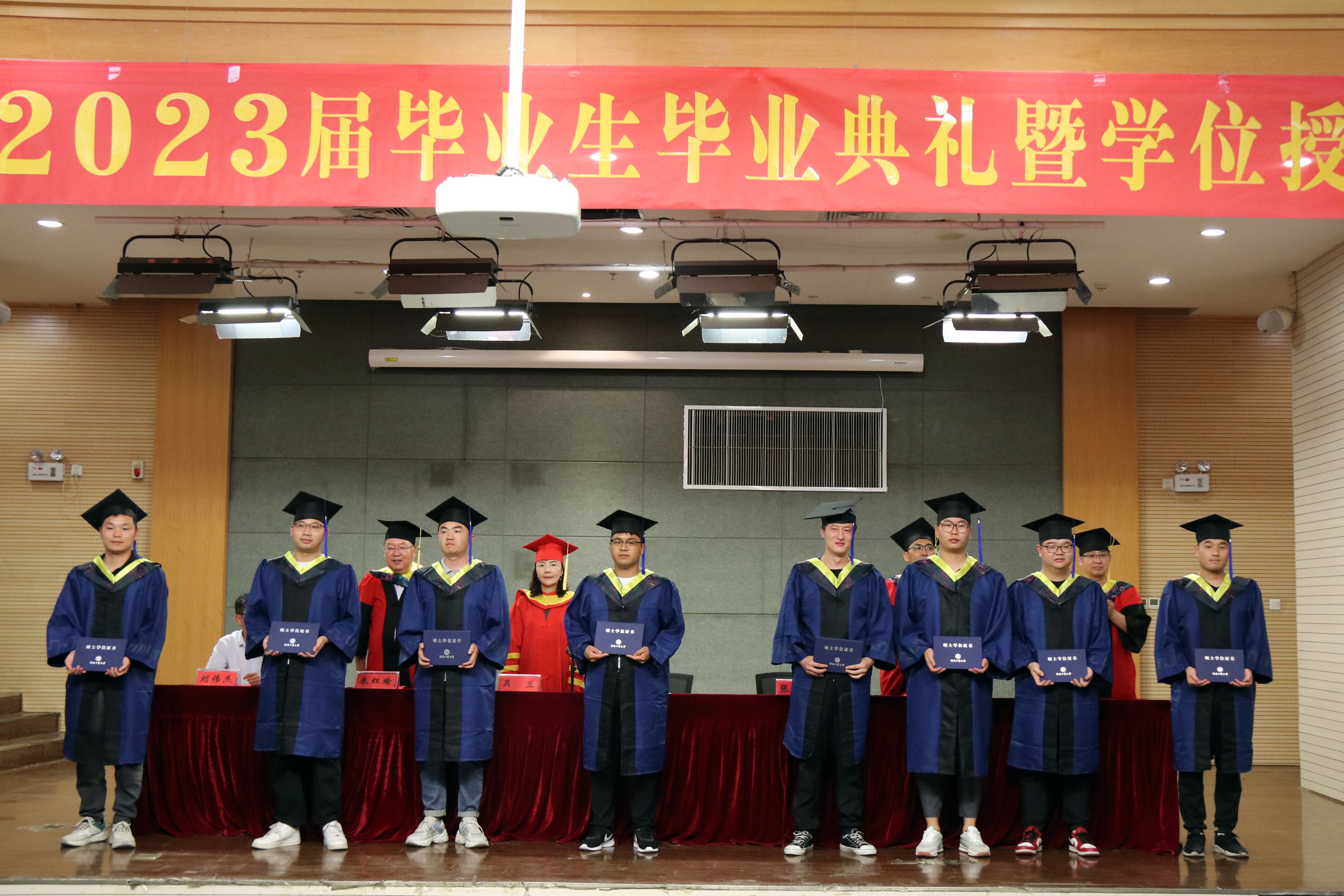关于授予2023届全日制本科硕士博士毕业生学位决定》,在神圣庄严的气氛中,毕业生们身着学士袍,登上受礼台,学院学位委员会老师为毕业生们拨穗正冠,颁发学位证书并合影留念,学位授予仪式圆满结束。