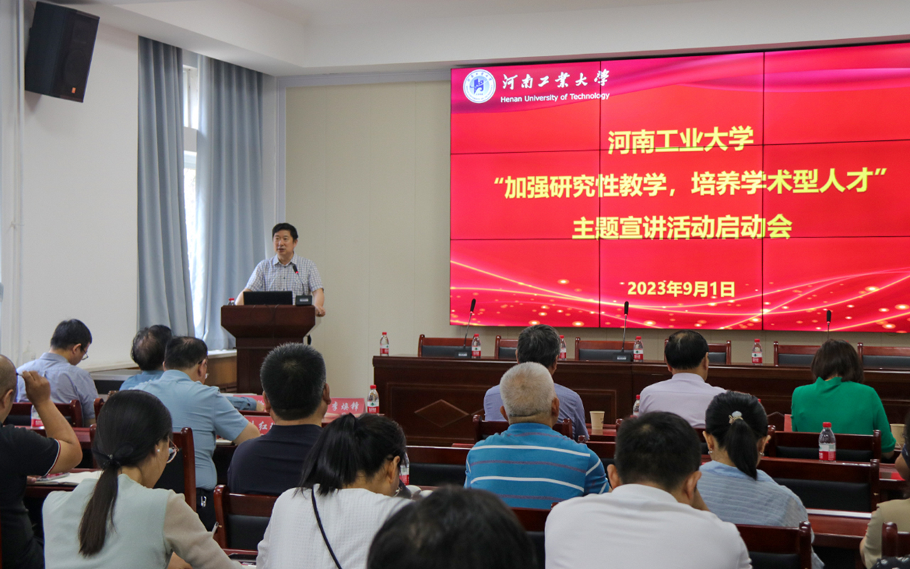 启动会上,李焕锋指出,学校要全力推动研究性教学,进一步培养学术型人才。在课程教学中,必须始终坚持以立德树人为根本任务,提升学生科研创新和实践能力,通过科教融汇和产教融合,建立健全研究性教学机制与保障,构建研究性教学体系,形成创新型人才培养的文化生态,培养一大批把科研做到中原大地上、论文写在中原大地上的高水平创新型人才和行业精英。