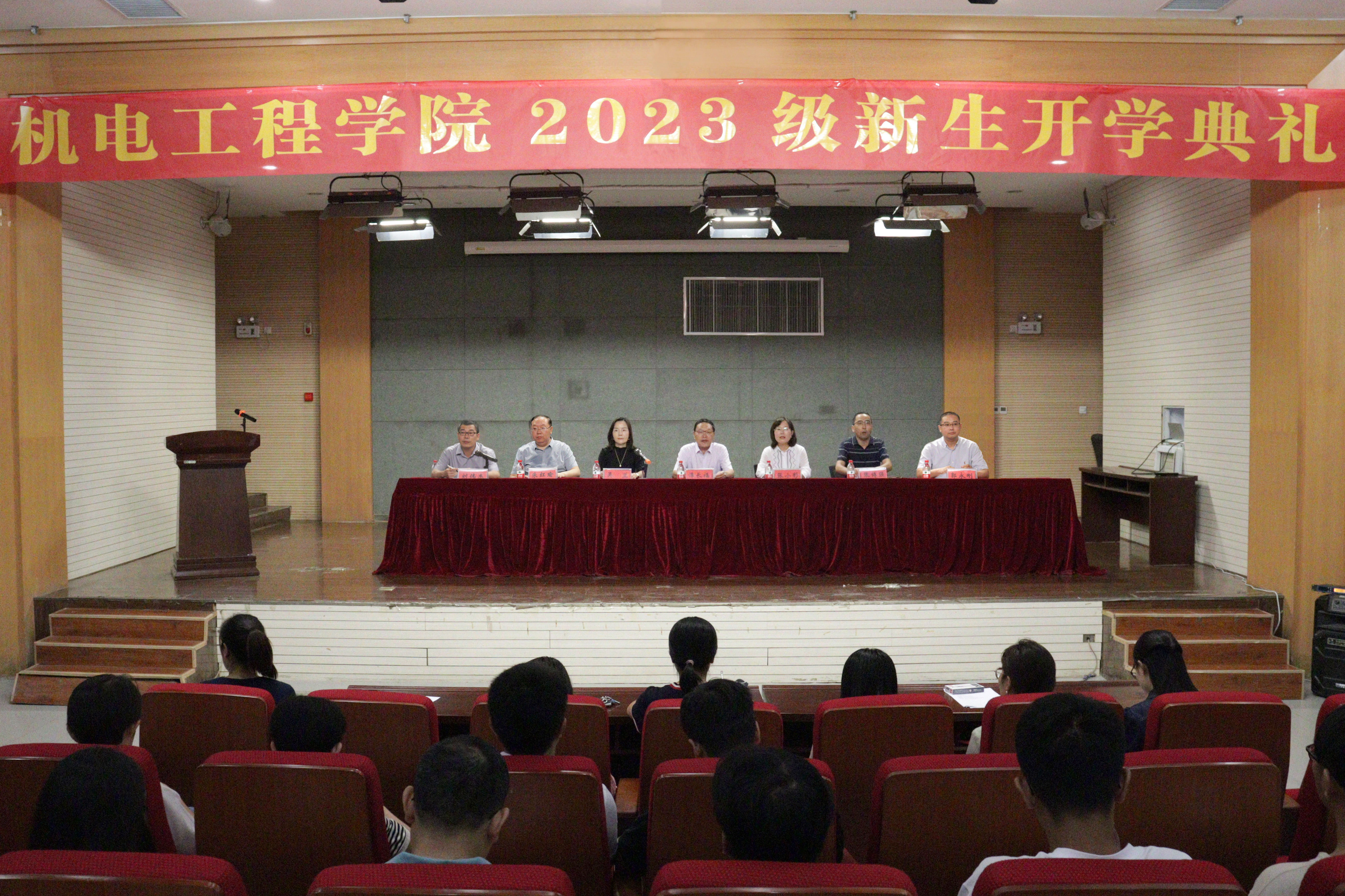 在图书馆学术报告厅隆重举行2023级新生开学典礼。学院党委书记谭长福、院长吴兰、副书记张小彩、副院长朱红瑜、郭永刚、张博强、各系(科室)主任、2023级班主任、教师代表、全体辅导员及学院2023级全体本科新生参加典礼。典礼由学院学工办主任刘伟杰主持。